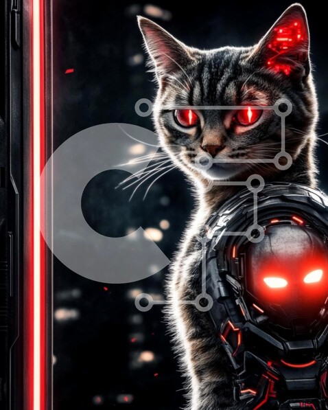 Υπάρχει δυνατότητα προσωποποίησης με δική σας φωτογραφία και προσαρμογής διαστάσεων κατόπιν παραγγελίας. Το συγεκεριμενο Puzzle 10x10 cm – 25 κομμ παρουσιαζει Η εικόνα παρουσιάζει μια φουτουριστική απεικόνιση μιας γάτας με λαμπερά κόκκινα μάτια και κυβερνητικές βελτιώσεις, που στέκεται δίπλα σε μια ρομποτική φιγούρα. Η κομψή γούνα της γάτας έρχεται σε αντίθεση με το σκούρο φόντο υψηλής τεχνολογίας