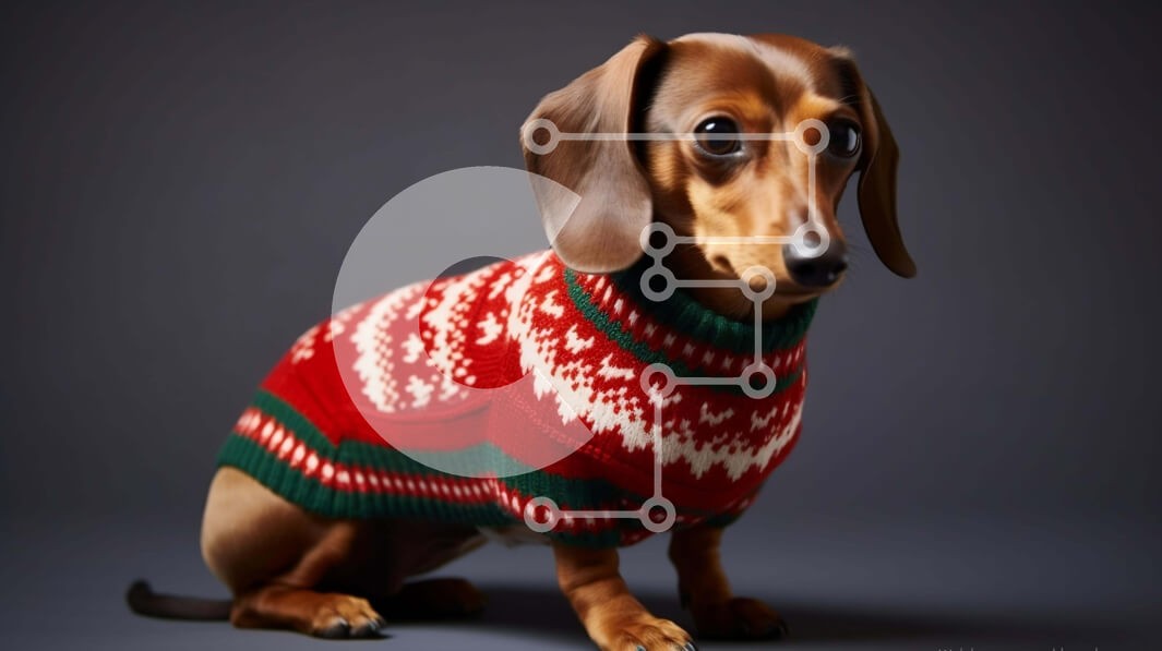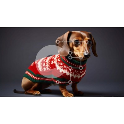 Υπάρχει δυνατότητα προσωποποίησης με δική σας φωτογραφία και προσαρμογής διαστάσεων κατόπιν παραγγελίας. Το συγεκεριμενο Puzzle 10x10 cm – 25 κομμ παρουσιαζει Αυτή η εικόνα παρουσιάζει έναν καφέ και λευκό σκύλο dachshund που φορά ένα πορτοκαλί, κόκκινο και πράσινο πουλόβερ. Ο σκύλος στέκεται με το κεφάλι γερμένο στο πλάι και τα μάτια του στραμμένα στην κάμερα. Φαίνεται να κοιτάζει κάτι στο φόντο τ