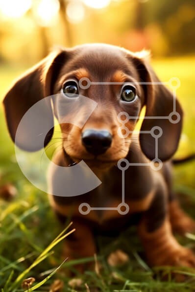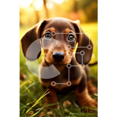 Υπάρχει δυνατότητα προσωποποίησης με δική σας φωτογραφία και προσαρμογής διαστάσεων κατόπιν παραγγελίας. Το συγεκεριμενο Puzzle 10x10 cm – 25 κομμ παρουσιαζει Αυτή η εικόνα είναι ενός μικρού καφέ και μαύρου σκύλου dachshund που κάθεται στο γρασίδι. Ο σκύλος κοιτάζει κατευθείαν την κάμερα με μεγάλα καστανά μάτια, τα αυτιά του είναι κουρασμένα και η ουρά του κουνάει. Ο ήλιος λάμπει στο σκυλί, ρίχνον