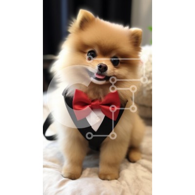 Υπάρχει δυνατότητα προσωποποίησης με δική σας φωτογραφία και προσαρμογής διαστάσεων κατόπιν παραγγελίας. Το συγεκεριμενο Puzzle 10x10 cm – 25 κομμ παρουσιαζει Αυτή η εικόνα απεικονίζει έναν χαρούμενο σκύλο Pomeranian ντυμένο με σμόκιν με κόκκινο παπιγιόν. Ο σκύλος έχει χνουδωτή γούνα και χαρούμενη έκφραση, κάθεται σε μια απαλή επιφάνεια με θολό φόντο. Το σμόκιν προσθέτει μια πινελιά κομψότητας, κά