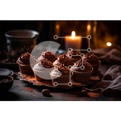 Υπάρχει δυνατότητα προσωποποίησης με δική σας φωτογραφία και προσαρμογής διαστάσεων κατόπιν παραγγελίας. Το συγεκεριμενο puzzle παρουσιαζει Αυτή η εικόνα παρουσιάζει ένα πιάτο με λαχταριστά cupcakes σοκολάτας που ολοκληρώνονται με γλάσο, τοποθετημένα σε ένα ρουστίκ ξύλινο τραπέζι. Ένα μόνο κερί ανάβει στο κέντρο των cupcakes, προσθέτοντας μια ζεστή λάμψη στη σκηνή. Τα cupcakes ψήνονται στην τελειότητα με πλούσια,
