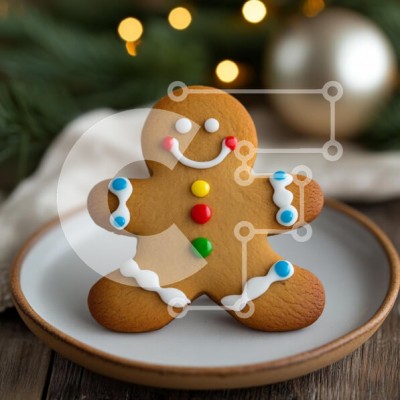 Υπάρχει δυνατότητα προσωποποίησης με δική σας φωτογραφία και προσαρμογής διαστάσεων κατόπιν παραγγελίας. Το συγεκεριμενο puzzle παρουσιαζει Η εικόνα παρουσιάζει ένα χαρούμενο μπισκότο από μελόψωμο διακοσμημένο με πολύχρωμο γλάσο. Τοποθετείται σε ένα ανοιχτόχρωμο πιάτο σε ένα απαλά θολό φόντο εορταστικών φώτων και πρασίνου, που προκαλεί μια ζεστή, ατμόσφαιρα διακοπών. Το μπισκότο έχει ένα χαμογελαστό πρόσωπο, με κό