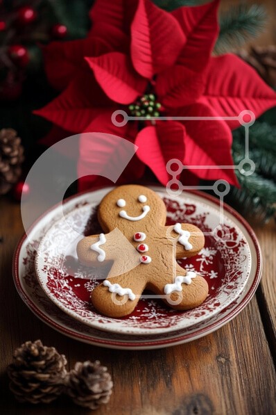 Υπάρχει δυνατότητα προσωποποίησης με δική σας φωτογραφία και προσαρμογής διαστάσεων κατόπιν παραγγελίας. Το συγεκεριμενο puzzle παρουσιαζει Η εικόνα παρουσιάζει ένα μπισκότο με μελόψωμο, τοποθετημένο σε ένα διακοσμητικό πιάτο, που περιβάλλεται από εορταστικές διακοσμήσεις. Το μπισκότο στολίζεται με λευκό γλάσο και κόκκινα κουμπιά καραμέλας, δίνοντάς του μια χαρούμενη εμφάνιση. Στο βάθος, ζωντανές κόκκινες αλεξανδρ
