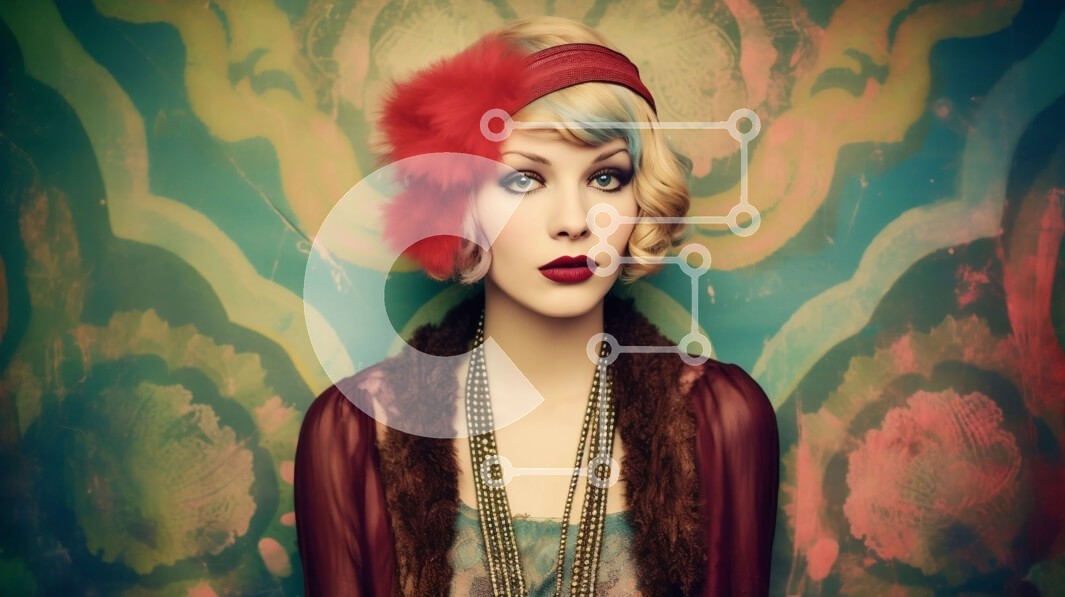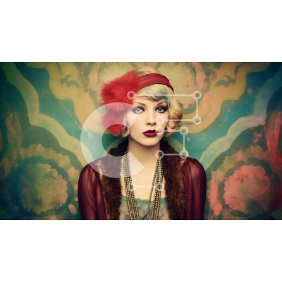 Υπάρχει δυνατότητα προσωποποίησης με δική σας φωτογραφία και προσαρμογής διαστάσεων κατόπιν παραγγελίας. Το συγεκεριμενο Puzzle 10x10 cm – 25 κομμ παρουσιαζει Αυτή η εικόνα απεικονίζει μια γυναίκα ντυμένη με ένα κλασικό φόρεμα με φλάπερ της δεκαετίας του 1920, με φτερωτή κεφαλή και κολιέ με χάντρες. Φοράει έντονο κόκκινο κραγιόν και τα μαλλιά της είναι χτενισμένα σε ένα μοντέρνο bob. Η συνολική εμ