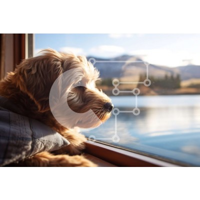Υπάρχει δυνατότητα προσωποποίησης με δική σας φωτογραφία και προσαρμογής διαστάσεων κατόπιν παραγγελίας. Το συγεκεριμενο Puzzle 10x10 cm – 25 κομμ παρουσιαζει Αυτή η εικόνα είναι ενός σκύλου Golden Retriever που κάθεται δίπλα σε ένα παράθυρο, κοιτάζοντας μια εκπληκτική θέα στα βουνά και μια λίμνη. Ο σκύλος είναι χνουδωτός και φιλικός, με την ουρά του να κουνάει και τα αυτιά του ψηλά. Το φόντο είνα