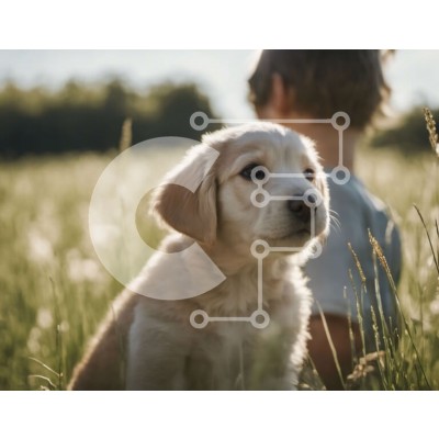 Υπάρχει δυνατότητα προσωποποίησης με δική σας φωτογραφία και προσαρμογής διαστάσεων κατόπιν παραγγελίας. Το συγεκεριμενο Puzzle 10x10 cm – 25 κομμ παρουσιαζει Αυτή η εικόνα παρουσιάζει ένα αξιολάτρευτο κουτάβι Golden Retriever που κάθεται σε ένα χωράφι με ψηλό γρασίδι. Το κουτάβι έχει ένα χνουδωτό παλτό και μια κουνημένη ουρά και κοιτάζει απευθείας την κάμερα με μια περίεργη έκφραση. Το φόντο είνα