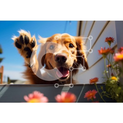Υπάρχει δυνατότητα προσωποποίησης με δική σας φωτογραφία και προσαρμογής διαστάσεων κατόπιν παραγγελίας. Το συγεκεριμενο Puzzle 10x10 cm – 25 κομμ παρουσιαζει Αυτή η εικόνα παρουσιάζει ένα χρυσό ριτρίβερ να βγάζει το κεφάλι του έξω από ένα παράθυρο, με τα μπροστινά πόδια του στο περβάζι. Ο σκύλος έχει ένα χνουδωτό τρίχωμα και μια χαρούμενη έκφραση στο πρόσωπό του. Στο βάθος, υπάρχει ένας φωτεινός