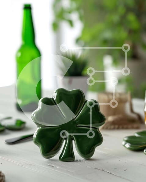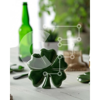Υπάρχει δυνατότητα προσωποποίησης με δική σας φωτογραφία και προσαρμογής διαστάσεων κατόπιν παραγγελίας. Το συγεκεριμενο puzzle παρουσιαζει Η εικόνα απεικονίζει ένα τραπέζι με πολλά αντικείμενα πάνω του, συμπεριλαμβανομένων τεσσάρων πράσινων σουβέρ με τριφύλλι και δύο μπουκαλιών μπύρας. Στο τραπέζι υπάρχει επίσης ένα μαχαίρι, το οποίο θα μπορούσε να χρησιμοποιηθεί για να κόψετε μερικά λαχανικά ή φρούτα. Επιπλέον,