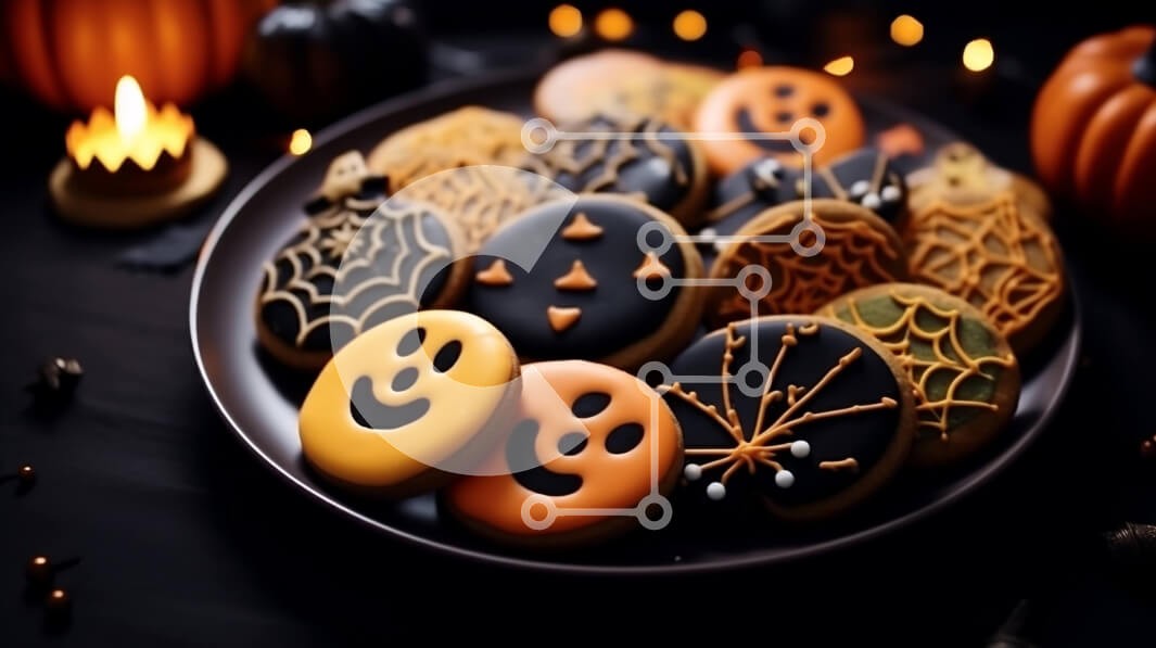 Υπάρχει δυνατότητα προσωποποίησης με δική σας φωτογραφία και προσαρμογής διαστάσεων κατόπιν παραγγελίας. Το συγεκεριμενο puzzle παρουσιαζει Αυτή η εικόνα παρουσιάζει ένα πιάτο με μπισκότα με θέμα το Halloween, διακοσμημένο με χαμογελαστά πρόσωπα και κολοκύθες. Τα μπισκότα τοποθετούνται πάνω από μαύρα κηροπήγια, προσθέτοντας στην απόκοσμη ατμόσφαιρα. Πολλά κεριά είναι διάσπαρτα γύρω από το τραπέζι, υποδηλώνοντας ότ
