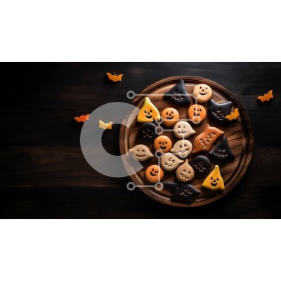 Υπάρχει δυνατότητα προσωποποίησης με δική σας φωτογραφία και προσαρμογής διαστάσεων κατόπιν παραγγελίας. Το συγεκεριμενο puzzle παρουσιαζει Αυτή η εικόνα παρουσιάζει έναν δίσκο με μπισκότα με θέμα το Halloween, διακοσμημένο με κολοκύθες, φαντάσματα και νυχτερίδες. Τα μπισκότα τοποθετούνται πάνω από ένα παλιό ξύλινο τραπέζι, δημιουργώντας ένα ρουστίκ και γιορτινό σκηνικό. Οι πεταλούδες φαίνονται να πετούν στο βάθος