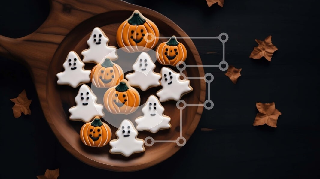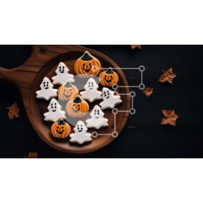 Υπάρχει δυνατότητα προσωποποίησης με δική σας φωτογραφία και προσαρμογής διαστάσεων κατόπιν παραγγελίας. Το συγεκεριμενο puzzle παρουσιαζει Αυτή η εικόνα παρουσιάζει ένα ξύλινο πιάτο με μπισκότα διακοσμημένα σε σχήμα φαντασμάτων και κολοκύθας. Τα μπισκότα τοποθετούνται πάνω από μια ξύλινη σανίδα με θέμα το φθινόπωρο, δημιουργώντας μια ελκυστική παρουσίαση. Στο βάθος, τα διάσπαρτα φύλλα προσθέτουν στη γιορτινή ατμό