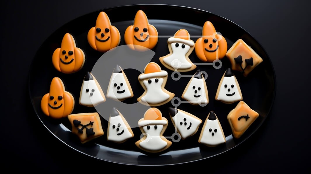 Υπάρχει δυνατότητα προσωποποίησης με δική σας φωτογραφία και προσαρμογής διαστάσεων κατόπιν παραγγελίας. Το συγεκεριμενο puzzle παρουσιαζει Αυτή η εικόνα παρουσιάζει ένα πιάτο με μπισκότα με θέμα το Halloween με διάφορα σχέδια, όπως κολοκύθες, φαντάσματα και μάγισσες. Μερικά από τα μπισκότα στοιβάζονται το ένα πάνω στο άλλο, ενώ άλλα απλώνονται σε όλο το πιάτο. Το τραπέζι διαθέτει επίσης διάσπαρτα μολύβια, τα οποί