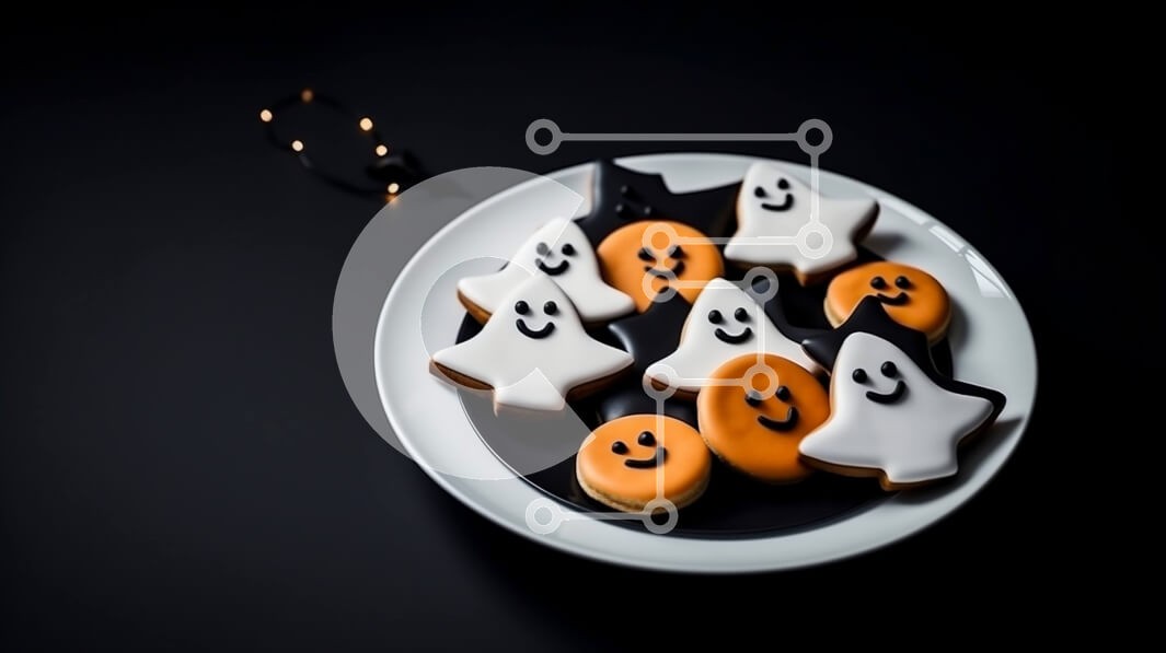 Υπάρχει δυνατότητα προσωποποίησης με δική σας φωτογραφία και προσαρμογής διαστάσεων κατόπιν παραγγελίας. Το συγεκεριμενο puzzle παρουσιαζει Αυτή η εικόνα δείχνει ένα πιάτο γεμάτο με μπισκότα με θέμα το Halloween σε σχήμα φαντάσματα και κολοκύθες. Τα μπισκότα είναι όμορφα διακοσμημένα και ιδανικά για κάθε γιορτή του Halloween. Γύρω από το πιάτο υπάρχουν διακοσμητικά φώτα, που δημιουργούν μια γιορτινή και μαγική ατμ