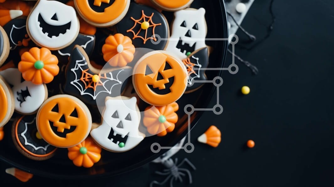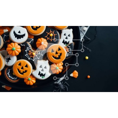Υπάρχει δυνατότητα προσωποποίησης με δική σας φωτογραφία και προσαρμογής διαστάσεων κατόπιν παραγγελίας. Το συγεκεριμενο puzzle παρουσιαζει Αυτή η εικόνα παρουσιάζει ένα πιάτο με μπισκότα με θέμα το Halloween στολισμένο με διάφορα διακοσμητικά, όπως κολοκύθες, φαντάσματα και νυχτερίδες. Το πιάτο διαθέτει επίσης πρόσθετες επικαλύψεις, όπως κομματάκια σοκολάτας, καραμέλες και ψεκασμούς για να βελτιώσουν τη συνολική