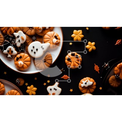Υπάρχει δυνατότητα προσωποποίησης με δική σας φωτογραφία και προσαρμογής διαστάσεων κατόπιν παραγγελίας. Το συγεκεριμενο puzzle παρουσιαζει Αυτή η εικόνα παρουσιάζει ένα πιάτο με μπισκότα με θέμα το Halloween. Τα μπισκότα είναι όμορφα διακοσμημένα με κολοκύθες και άλλα διακοσμητικά με θέμα το Halloween. Τοποθετούνται σε μαύρο φόντο, δημιουργώντας μια εντυπωσιακή αντίθεση. Υπάρχουν επίσης μικρά μπολ γεμάτα με διάφο