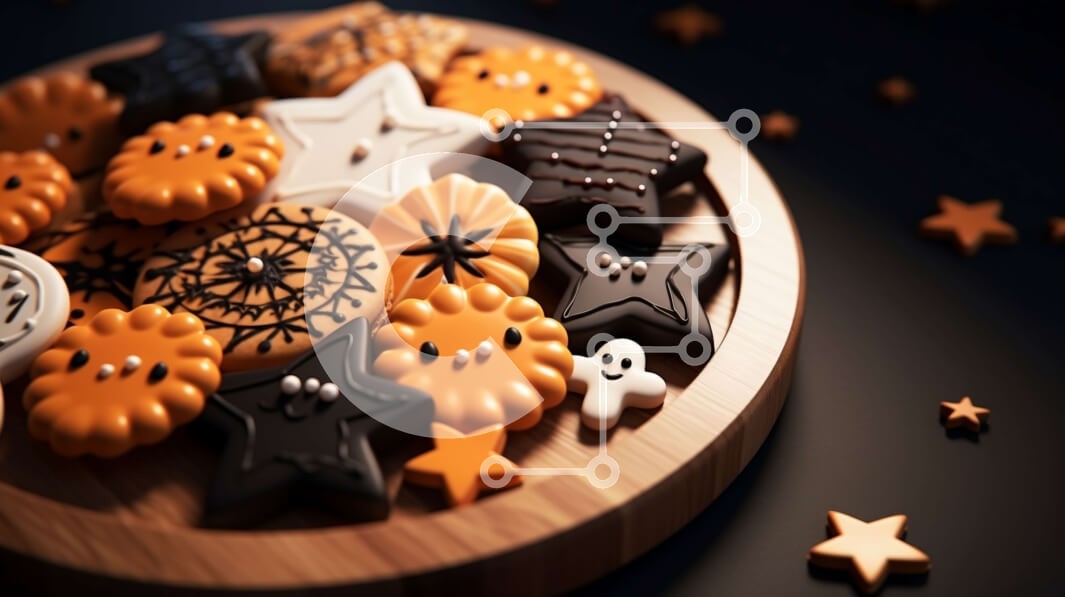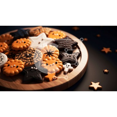 Υπάρχει δυνατότητα προσωποποίησης με δική σας φωτογραφία και προσαρμογής διαστάσεων κατόπιν παραγγελίας. Το συγεκεριμενο puzzle παρουσιαζει Αυτή η εικόνα παρουσιάζει ένα πιάτο με μπισκότα με θέμα το Halloween διακοσμημένο με διάφορα σχήματα και χρώματα, όπως μαύρο, λευκό, πορτοκαλί και κόκκινο. Υπάρχουν αστέρια και άλλα διακοσμητικά στο πιάτο, καθιστώντας το ιδανική απόλαυση για την εποχή του Halloween. Ιδανικό γι