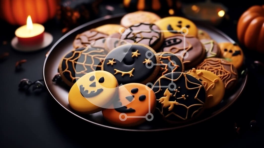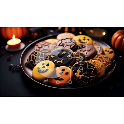 Υπάρχει δυνατότητα προσωποποίησης με δική σας φωτογραφία και προσαρμογής διαστάσεων κατόπιν παραγγελίας. Το συγεκεριμενο puzzle παρουσιαζει Αυτή η εικόνα παρουσιάζει ένα πιάτο με μπισκότα με θέμα το Halloween διακοσμημένα με εορταστικά σχέδια, συμπεριλαμβανομένων κολοκύθες και φαντάσματα. Δημιουργεί μια απόκοσμη και φιλόξενη ατμόσφαιρα, με πολλά κεριά τοποθετημένα στρατηγικά γύρω από το πιάτο. Αυτά τα μπισκότα είν