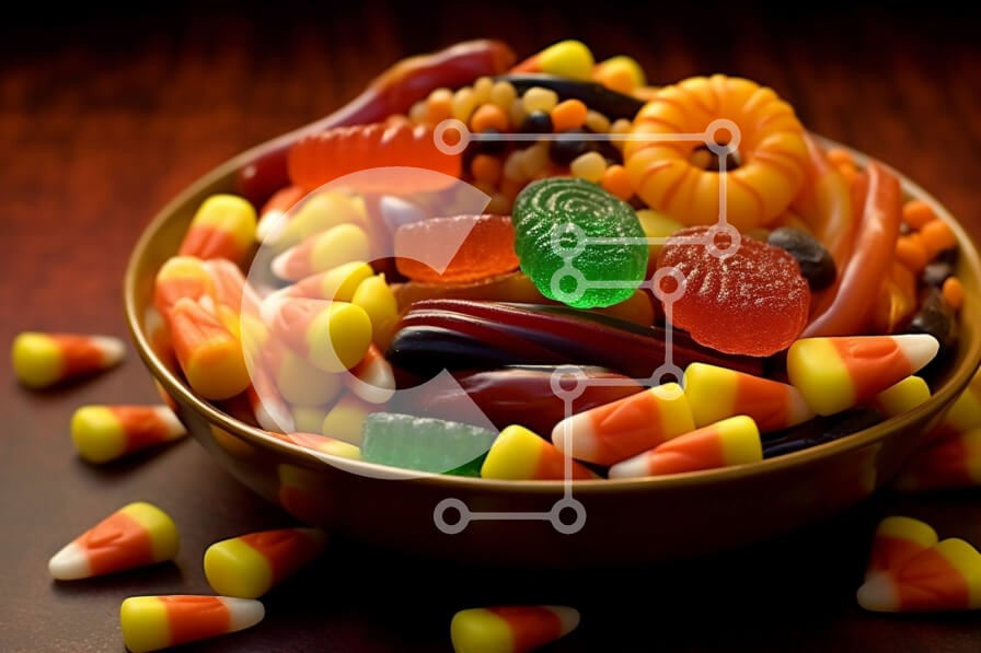 Υπάρχει δυνατότητα προσωποποίησης με δική σας φωτογραφία και προσαρμογής διαστάσεων κατόπιν παραγγελίας. Το συγεκεριμενο puzzle παρουσιαζει Αυτή η εικόνα παρουσιάζει μια ποικιλία από καραμέλες για το Halloween τακτοποιημένα σε ένα μπολ. Η καραμέλα περιλαμβάνει gummy worms, gummy bears και gummy candy corn σε διάφορα χρώματα. Το φόντο είναι θολό, διατηρώντας την εστίαση στην καραμέλα σε πρώτο πλάνο. Ένα μοναδικό p