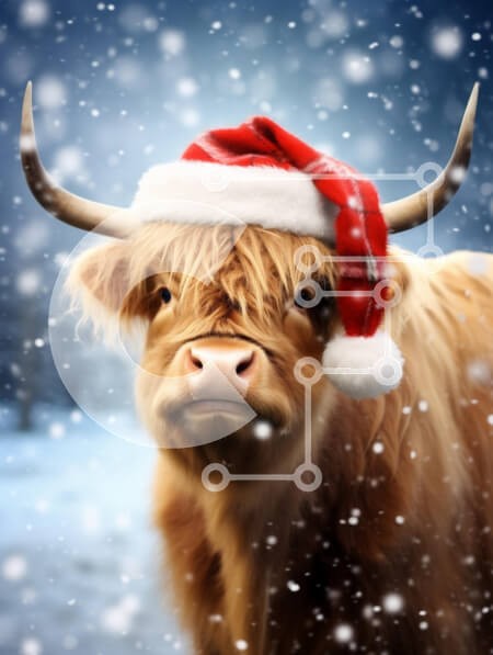 Υπάρχει δυνατότητα προσωποποίησης με δική σας φωτογραφία και προσαρμογής διαστάσεων κατόπιν παραγγελίας. Το συγεκεριμενο Puzzle 10x10 cm – 25 κομμ παρουσιαζει Η εικόνα απεικονίζει μια αγελάδα Highland στολισμένη με ένα χριστουγεννιάτικο καπέλο, σε ένα χιονισμένο φόντο. Η μακριά, δασύτριχη γούνα της αγελάδας τονίζεται από τις νιφάδες χιονιού που πέφτουν, δημιουργώντας ένα ιδιότροπο χειμωνιάτικο σκη