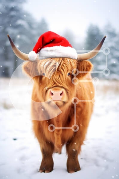 Υπάρχει δυνατότητα προσωποποίησης με δική σας φωτογραφία και προσαρμογής διαστάσεων κατόπιν παραγγελίας. Το συγεκεριμενο Puzzle 10x10 cm – 25 κομμ παρουσιαζει Αυτή η εικόνα παρουσιάζει μια αγελάδα Highland να στέκεται σε ένα χιονισμένο τοπίο, φορώντας ένα εορταστικό κόκκινο καπέλο Χριστουγέννων. Το μακρύ, δασύτριχο τρίχωμα της αγελάδας είναι ένα ζωηρό πορτοκαλί-καφέ χρώμα και έχει χαρακτηριστικά κ