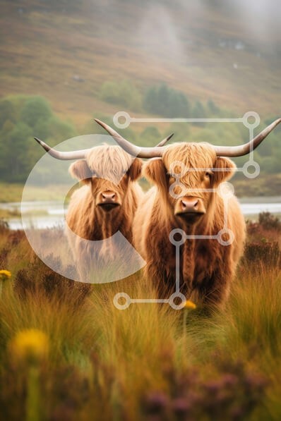 Υπάρχει δυνατότητα προσωποποίησης με δική σας φωτογραφία και προσαρμογής διαστάσεων κατόπιν παραγγελίας. Το συγεκεριμενο Puzzle 10x10 cm – 25 κομμ παρουσιαζει Αυτή η εικόνα παρουσιάζει δύο αγελάδες ορεινών περιοχών που στέκονται σε ένα χωράφι με ψηλό γρασίδι και λουλούδια, με βουνά στο βάθος. Οι αγελάδες κοιτάζουν κατευθείαν μπροστά και η μακριά γούνα τους φυσάει απαλά στον άνεμο. Τα χρώματα του γ