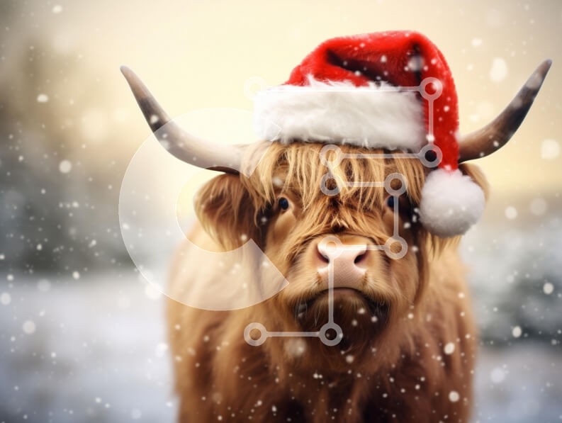 Υπάρχει δυνατότητα προσωποποίησης με δική σας φωτογραφία και προσαρμογής διαστάσεων κατόπιν παραγγελίας. Το συγεκεριμενο Puzzle 10x10 cm – 25 κομμ παρουσιαζει Η εικόνα απεικονίζει μια αγελάδα των Χάιλαντ που φορά ένα εορταστικό καπέλο Άγιου Βασίλη, σε ένα απαλά θολό χειμωνιάτικο φόντο με νιφάδες χιονιού που πέφτουν. Η χνουδωτή γούνα της αγελάδας είναι μια ζεστή απόχρωση του καφέ, που έρχεται σε όμ