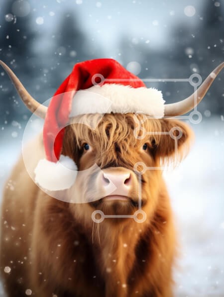 Υπάρχει δυνατότητα προσωποποίησης με δική σας φωτογραφία και προσαρμογής διαστάσεων κατόπιν παραγγελίας. Το συγεκεριμενο Puzzle 10x10 cm – 25 κομμ παρουσιαζει Αυτή η εικόνα παρουσιάζει μια αγελάδα των Χάιλαντ που φορά ένα εορταστικό καπέλο Άγιου Βασίλη, με φόντο ένα χιονισμένο φόντο. Η μακριά, δασύτριχη γούνα της αγελάδας έχει μια ζεστή καφέ απόχρωση που έρχεται σε αντίθεση με τις λευκές νιφάδες χ