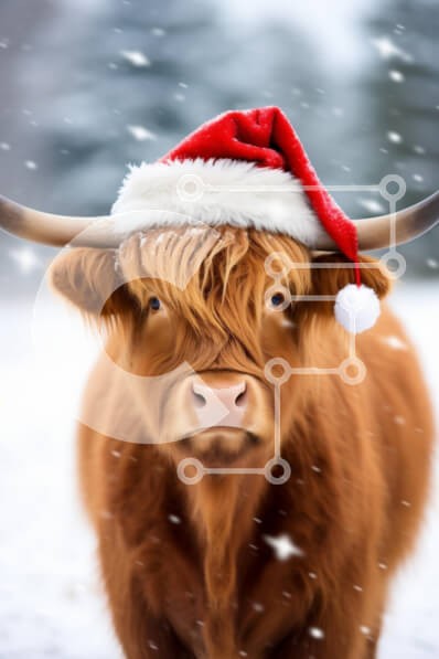 Υπάρχει δυνατότητα προσωποποίησης με δική σας φωτογραφία και προσαρμογής διαστάσεων κατόπιν παραγγελίας. Το συγεκεριμενο Puzzle 10x10 cm – 25 κομμ παρουσιαζει Η εικόνα απεικονίζει μια αγελάδα Highland στολισμένη με ένα εορταστικό κόκκινο και λευκό καπέλο Άγιου Βασίλη, σε ένα χιονισμένο φόντο. Μαλακές νιφάδες χιονιού πέφτουν απαλά γύρω από την αγελάδα, ενισχύοντας τη χειμωνιάτικη ατμόσφαιρα. Η παχι