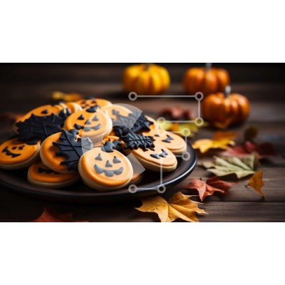 Υπάρχει δυνατότητα προσωποποίησης με δική σας φωτογραφία και προσαρμογής διαστάσεων κατόπιν παραγγελίας. Το συγεκεριμενο puzzle παρουσιαζει Αυτή η εικόνα παρουσιάζει ένα πιάτο γεμάτο με μπισκότα jack-o'-lantern σε σχήμα κολοκύθας. Τα μπισκότα είναι διακοσμημένα με μαύρο γλάσο και θυμίζουν παραδοσιακές αποκριάτικες διακοσμήσεις. Γύρω από το πιάτο υπάρχουν πολλά φθινοπωρινά φύλλα, που προσθέτουν στην εποχιακή ατμόσφ