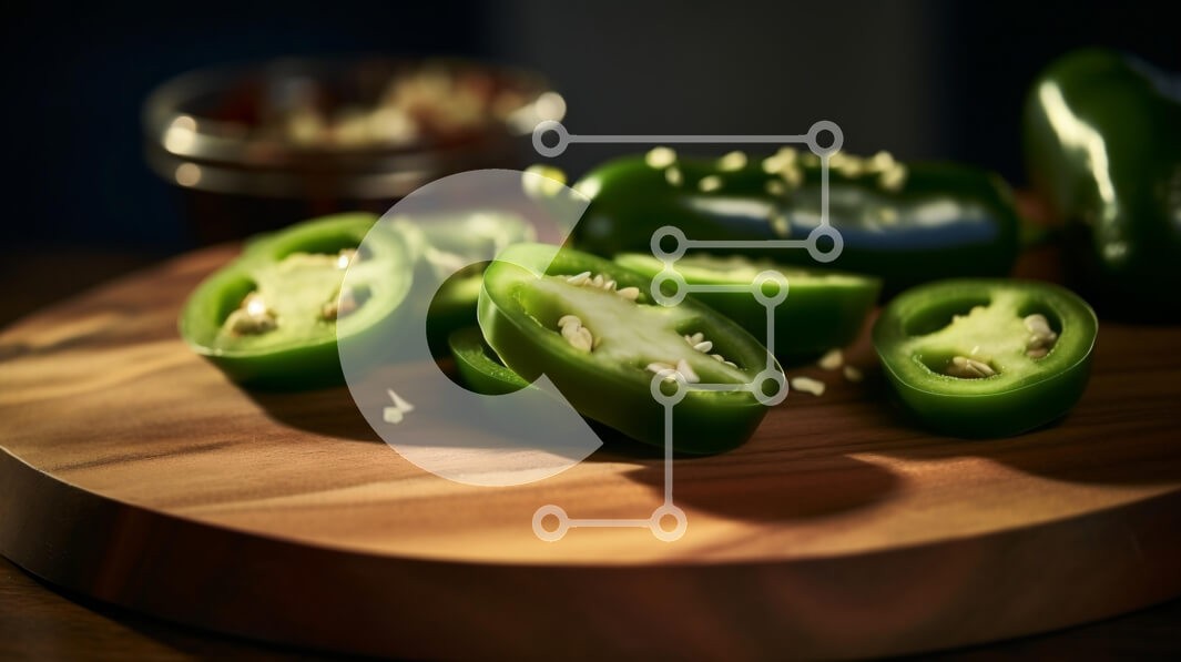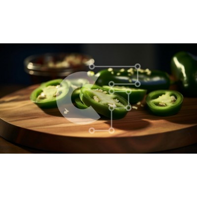 Υπάρχει δυνατότητα προσωποποίησης με δική σας φωτογραφία και προσαρμογής διαστάσεων κατόπιν παραγγελίας. Το συγεκεριμενο puzzle παρουσιαζει Αυτή η εικόνα παρουσιάζει φρεσκοκομμένες πιπεριές jalapeo τοποθετημένες σε ξύλινο ξύλο κοπής. Το ζωηρό πράσινο χρώμα των πιπεριών έρχεται σε όμορφη αντίθεση με τους ζεστούς τόνους του ξύλου. Μερικές φέτες είναι τοποθετημένες όρθιες, αναδεικνύοντας το εσωτερικό τους, ενώ μερικέ