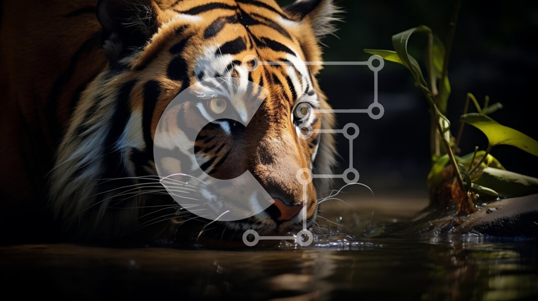 Υπάρχει δυνατότητα προσωποποίησης με δική σας φωτογραφία και προσαρμογής διαστάσεων κατόπιν παραγγελίας. Το συγεκεριμενο Puzzle 10x10 cm – 25 κομμ παρουσιαζει Η εικόνα παρουσιάζει μια μεγαλοπρεπή τίγρη μερικώς βυθισμένη στο νερό, με το έντονο βλέμμα της στραμμένο στον θεατή. Οι εντυπωσιακές πορτοκαλί και μαύρες ρίγες της τίγρης εμφανίζονται έντονα στο πιο σκούρο φόντο της πλούσιας πρασινάδας. Το α