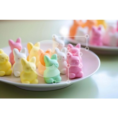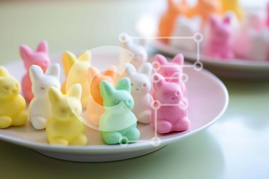 Υπάρχει δυνατότητα προσωποποίησης με δική σας φωτογραφία και προσαρμογής διαστάσεων κατόπιν παραγγελίας. Το συγεκεριμενο puzzle παρουσιαζει Η εικόνα παρουσιάζει πολλά πολύχρωμα marshmallow τιτιβίσματα τοποθετημένα σε ένα λευκό πιάτο. Τα κουνελάκια έρχονται σε διάφορα χρώματα όπως ροζ, πορτοκαλί, κίτρινο και πράσινο, δημιουργώντας μια οπτικά ελκυστική εμφάνιση. Ένα μοναδικό puzzle που συνδυάζει ποιότητα, αισθητική