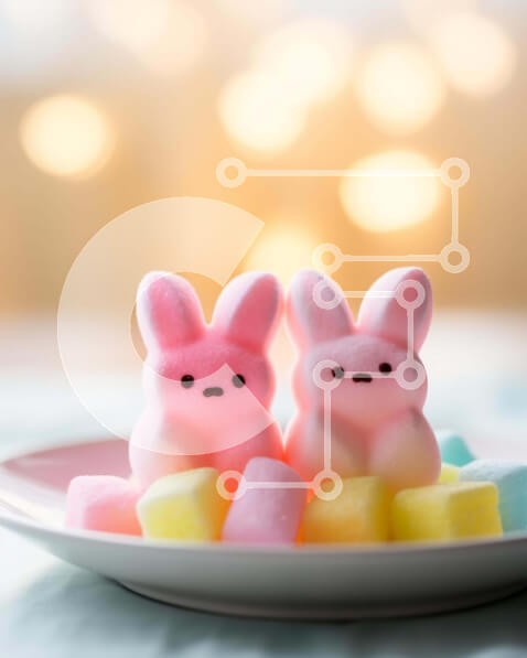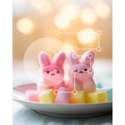 Υπάρχει δυνατότητα προσωποποίησης με δική σας φωτογραφία και προσαρμογής διαστάσεων κατόπιν παραγγελίας. Το συγεκεριμενο puzzle παρουσιαζει Αυτή η εικόνα παρουσιάζει δύο λαγουδάκια marshmallow τοποθετημένα στο κέντρο ενός λευκού πιάτου, με τα πρόσωπά τους στραμμένα το ένα προς το άλλο. Πολύχρωμα marshmallows είναι διάσπαρτα γύρω από το τραπέζι, υποδηλώνοντας ένα πασχαλινό γλυκό. Ένα μοναδικό puzzle που συνδυάζει