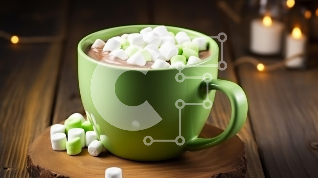 Υπάρχει δυνατότητα προσωποποίησης με δική σας φωτογραφία και προσαρμογής διαστάσεων κατόπιν παραγγελίας. Το συγεκεριμενο puzzle παρουσιαζει Η εικόνα δείχνει μια ζωντανή πράσινη κούπα γεμάτη με πλούσια, κρεμώδη ζεστή σοκολάτα με αφράτα λευκά και πράσινα marshmallows. Η κούπα τοποθετείται σε ένα στρογγυλό ξύλινο σουβέρ, και γύρω από τη βάση της κούπας φαίνονται διάσπαρτα marshmallows. Το σκηνικό είναι ζεστό και άνετ