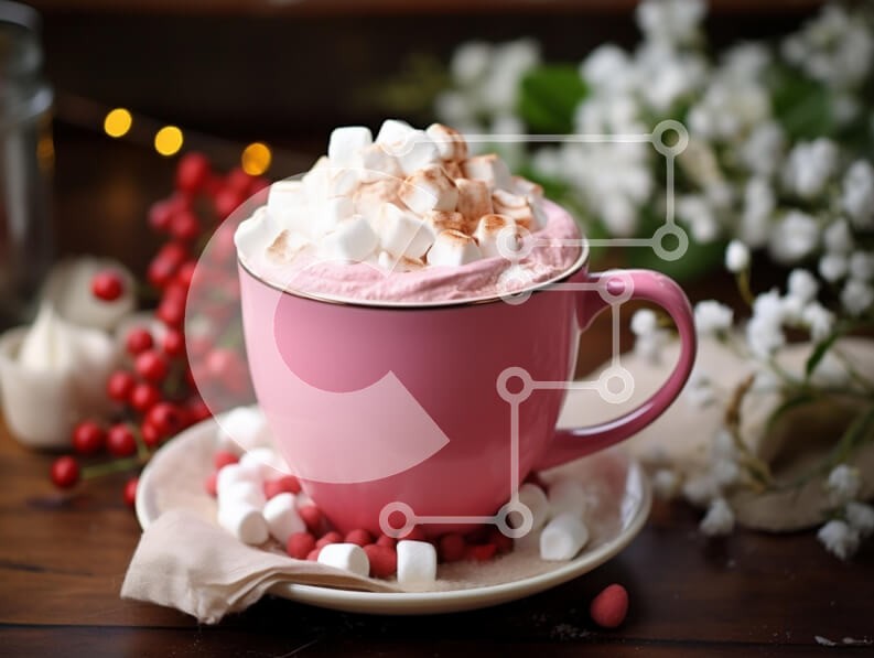 Υπάρχει δυνατότητα προσωποποίησης με δική σας φωτογραφία και προσαρμογής διαστάσεων κατόπιν παραγγελίας. Το συγεκεριμενο puzzle παρουσιαζει Αυτή η εικόνα παρουσιάζει ένα μεγάλο ροζ φλιτζάνι γεμάτο με ζεστή σοκολάτα, με αφράτη σαντιγί και μίνι marshmallows. Το φλιτζάνι κάθεται σε ένα μικρό πιάτο που περιβάλλεται από διάσπαρτα marshmallows και πολύχρωμες καραμέλες. Στο βάθος, υπάρχουν διακοσμητικά λουλούδια και φύλλ