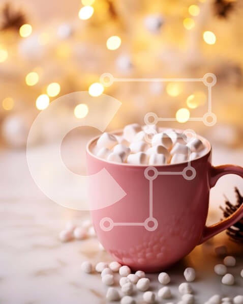 Υπάρχει δυνατότητα προσωποποίησης με δική σας φωτογραφία και προσαρμογής διαστάσεων κατόπιν παραγγελίας. Το συγεκεριμενο puzzle παρουσιαζει Αυτή η εικόνα παρουσιάζει ένα ροζ φλιτζάνι καφέ γεμάτο με marshmallows και νιφάδες χιονιού, τοποθετημένο μπροστά από ένα διακοσμητικό φόντο διακοσμημένο με χριστουγεννιάτικα λαμπάκια. Στο τραπέζι διακρίνονται επίσης κουκουνάρια και καλαμπόκι, προσθέτοντας στη γιορτινή ατμόσφαι