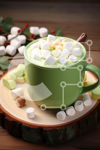 Υπάρχει δυνατότητα προσωποποίησης με δική σας φωτογραφία και προσαρμογής διαστάσεων κατόπιν παραγγελίας. Το συγεκεριμενο puzzle παρουσιαζει Αυτή η εικόνα παρουσιάζει μια ζεστή πράσινη κούπα γεμάτη με ένα κρεμώδες ρόφημα με άφθονα αφράτα marshmallows. Η κούπα τοποθετείται σε ξύλινη πιατέλα, που περιβάλλεται από διάφορα marshmallows σε διάφορα χρώματα και σχήματα. Στο βάθος, τα φύλλα πουρνάρι και τα κόκκινα μούρα πρ