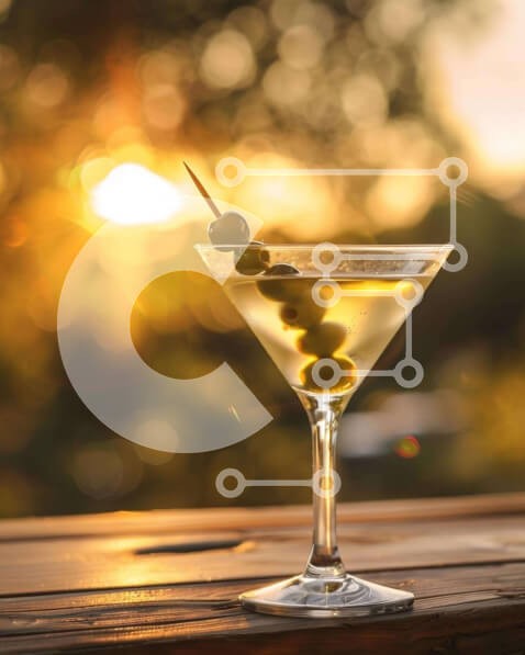 Υπάρχει δυνατότητα προσωποποίησης με δική σας φωτογραφία και προσαρμογής διαστάσεων κατόπιν παραγγελίας. Το συγεκεριμενο puzzle παρουσιαζει Η εικόνα δείχνει ένα ποτήρι μαρτίνι με ελιές από πάνω, τοποθετημένο σε ένα εξωτερικό ξύλινο τραπέζι. Πολλά ξυλάκια ελιάς περιβάλλουν το ποτήρι, υποδεικνύοντας ένα γαρνιρισμένο κοκτέιλ. Η σκηνή προτείνει μια αναζωογονητική και κομψή παρουσίαση ποτού. Ένα μοναδικό puzzle που συ