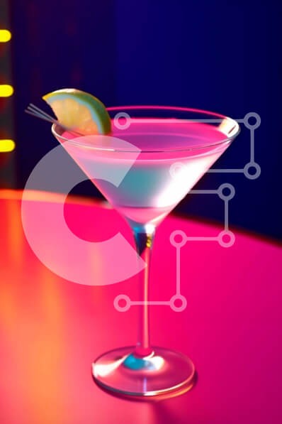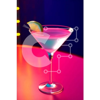 Υπάρχει δυνατότητα προσωποποίησης με δική σας φωτογραφία και προσαρμογής διαστάσεων κατόπιν παραγγελίας. Το συγεκεριμενο puzzle παρουσιαζει Η εικόνα παρουσιάζει ένα ποτήρι μαρτίνι γεμάτο με ροζ υγρό και γαρνιρισμένο με μια φέτα πορτοκαλιού. Το ποτό τοποθετείται πάνω από το τραπέζι, το οποίο είναι διακοσμημένο με πολύχρωμα φωτάκια και χρώματα νέον. Υπάρχουν πολλά αντικείμενα που υπάρχουν στην εικόνα, όπως ποτήρια,