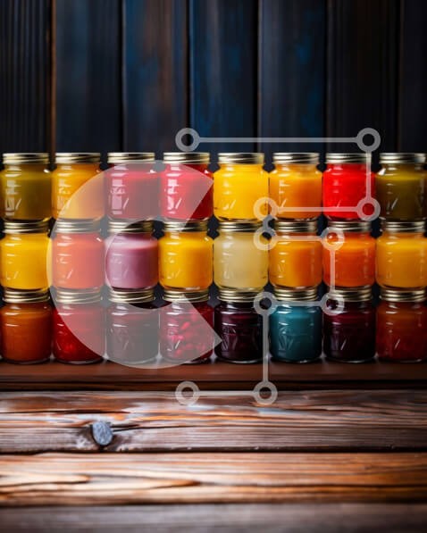 Υπάρχει δυνατότητα προσωποποίησης με δική σας φωτογραφία και προσαρμογής διαστάσεων κατόπιν παραγγελίας. Το συγεκεριμενο puzzle παρουσιαζει Αυτή η εικόνα παρουσιάζει μια σειρά από βάζα γεμάτα με διάφορες χρωματιστές μαρμελάδες και ζελέ. Τα βάζα τοποθετούνται σε ένα ξύλινο ράφι, το οποίο παρέχει ένα ρουστίκ φόντο. Το σκούρο ξύλινο σκηνικό ενισχύει τα ζωηρά χρώματα των κονσέρβων, δημιουργώντας μια ελκυστική οπτική α
