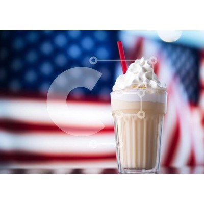 Υπάρχει δυνατότητα προσωποποίησης με δική σας φωτογραφία και προσαρμογής διαστάσεων κατόπιν παραγγελίας. Το συγεκεριμενο puzzle παρουσιαζει Η εικόνα παρουσιάζει ένα ποτήρι milkshake με σαντιγί και παγωτό στο φόντο μιας αμερικανικής σημαίας. Ένα καλαμάκι τοποθετείται πάνω από το ποτό, το οποίο μπορεί να υποδηλώνει ότι σερβίρεται σε κάποιον. Υπάρχουν πολλές κόκκινες, λευκές και μπλε σημαίες ορατές σε όλη την εικόνα,