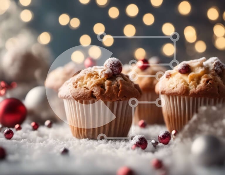Υπάρχει δυνατότητα προσωποποίησης με δική σας φωτογραφία και προσαρμογής διαστάσεων κατόπιν παραγγελίας. Το συγεκεριμενο puzzle παρουσιαζει Η εικόνα παρουσιάζει τρία μάφιν σε ένα πιάτο, πασπαλισμένα γενναιόδωρα με ζάχαρη άχνη και γαρνιρισμένα με ζωηρά κόκκινα μούρα. Αυτά τα muffins φτιάχνονται με λευκό αλεύρι, δίνοντάς τους μια ελαφριά και αφράτη υφή. Το φόντο είναι μια εορταστική σκηνή, με φώτα που αναβοσβήνουν κ