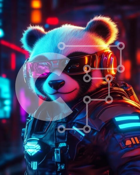 Υπάρχει δυνατότητα προσωποποίησης με δική σας φωτογραφία και προσαρμογής διαστάσεων κατόπιν παραγγελίας. Το συγεκεριμενο Puzzle 10x10 cm – 25 κομμ παρουσιαζει Η εικόνα δείχνει ένα στυλιζαρισμένο πάντα που φοράει φουτουριστικά γυαλιά ηλίου και ένα κομψό, υψηλής τεχνολογίας ρούχο. Το panda έχει μια φιλική έκφραση, με φόντο ένα ζωντανό, φωτισμένο νέον φόντο πόλης που αποπνέει μια μοντέρνα, ψηφιακή ατ