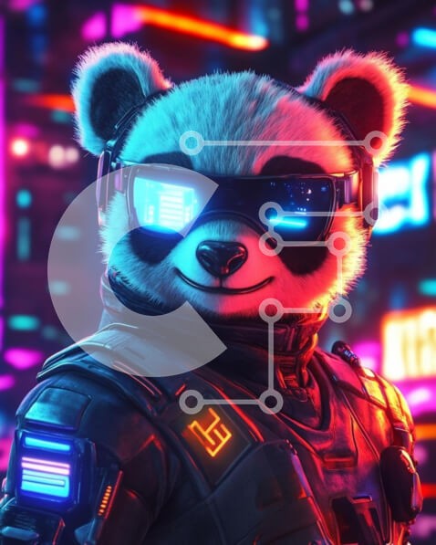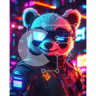 Υπάρχει δυνατότητα προσωποποίησης με δική σας φωτογραφία και προσαρμογής διαστάσεων κατόπιν παραγγελίας. Το συγεκεριμενο Puzzle 10x10 cm – 25 κομμ παρουσιαζει Η εικόνα απεικονίζει έναν στυλιζαρισμένο χαρακτήρα panda που φορά φουτουριστικά γυαλιά ηλίου και μια στολή υψηλής τεχνολογίας. Το panda έχει μια φιλική έκφραση, στέκεται σε ένα ζωντανό σκηνικό με φώτα νέον σε αποχρώσεις του μπλε, του μωβ και