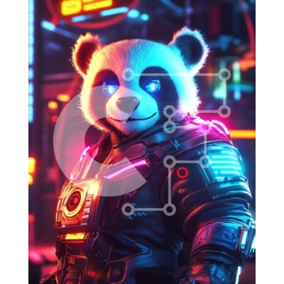 Υπάρχει δυνατότητα προσωποποίησης με δική σας φωτογραφία και προσαρμογής διαστάσεων κατόπιν παραγγελίας. Το συγεκεριμενο Puzzle 10x10 cm – 25 κομμ παρουσιαζει Αυτή η εικόνα παρουσιάζει ένα φουτουριστικό, ανθρωπόμορφο πάντα με λαμπερά μπλε μάτια και μια χαρούμενη έκφραση. Το panda φοράει ένα κομψό κοστούμι υψηλής τεχνολογίας διακοσμημένο με φώτα νέον σε διάφορα χρώματα, που το κάνουν να φαίνεται ζω