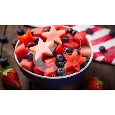 Υπάρχει δυνατότητα προσωποποίησης με δική σας φωτογραφία και προσαρμογής διαστάσεων κατόπιν παραγγελίας. Το συγεκεριμενο puzzle παρουσιαζει Αυτή η εικόνα δείχνει ένα μπολ γεμάτο με καρπούζι, βατόμουρα, φράουλες και κόκκινα σμέουρα. Το μπολ είναι διακοσμημένο με σχέδιο αμερικανικής σημαίας και περιλαμβάνει πολλά κομμάτια φρούτων σε σχήμα αστεριού, δημιουργώντας μια πατριωτική και ζωντανή εμφάνιση. Ένα μοναδικό puz