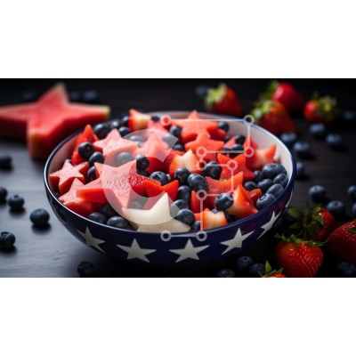 Υπάρχει δυνατότητα προσωποποίησης με δική σας φωτογραφία και προσαρμογής διαστάσεων κατόπιν παραγγελίας. Το συγεκεριμενο puzzle παρουσιαζει Αυτή η εικόνα παρουσιάζει ένα μπολ γεμάτο με διάφορα φρούτα, όπως καρπούζι, φράουλες και βατόμουρα. Κομμάτια φρούτων σε σχήμα αστεριού είναι διάσπαρτα σε όλο το μπολ, δημιουργώντας μια εντυπωσιακή οθόνη που είναι ιδανική για τον εορτασμό της 4ης Ιουλίου ή οποιασδήποτε άλλης πα