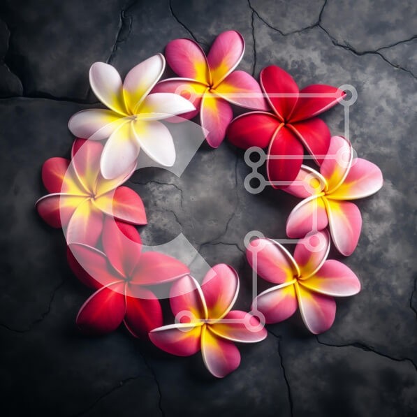 Υπάρχει δυνατότητα προσωποποίησης με δική σας φωτογραφία και προσαρμογής διαστάσεων κατόπιν παραγγελίας. Το συγεκεριμενο Puzzle 10x10 cm – 25 κομμ παρουσιαζει Αυτή η εικόνα παρουσιάζει μια κυκλική διάταξη από ζωντανά λουλούδια Plumeria σε αποχρώσεις του ροζ, του κόκκινου και του λευκού, σε φόντο γκρι πέτρινης υφής. Τα λουλούδια παρουσιάζουν μια κλίση χρωμάτων με κίτρινα κέντρα, δημιουργώντας μια ό