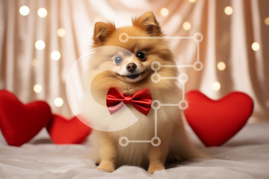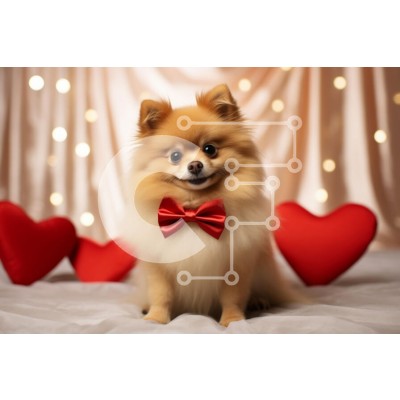 Υπάρχει δυνατότητα προσωποποίησης με δική σας φωτογραφία και προσαρμογής διαστάσεων κατόπιν παραγγελίας. Το συγεκεριμενο Puzzle 10x10 cm – 25 κομμ παρουσιαζει Αυτή η εικόνα παρουσιάζει έναν αξιολάτρευτο σκύλο Pomeranian να κάθεται μπροστά σε ένα απαλό σκηνικό με φώτα που αναβοσβήνουν και κόκκινα μαξιλάρια σε σχήμα καρδιάς. Ο σκύλος έχει ένα αφράτο παλτό και φοράει ένα έντονο κόκκινο παπιγιόν, δίνο