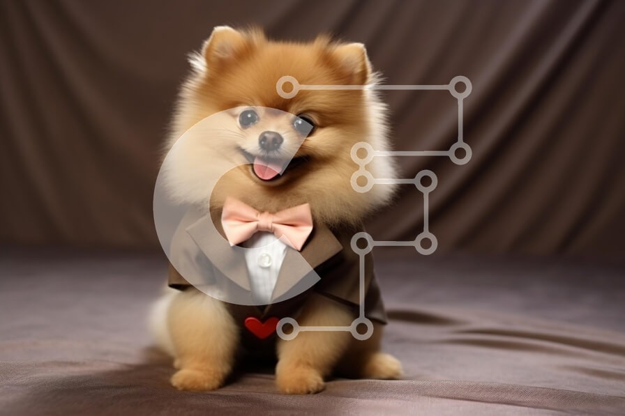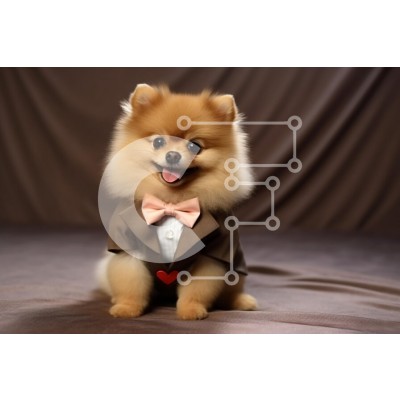 Υπάρχει δυνατότητα προσωποποίησης με δική σας φωτογραφία και προσαρμογής διαστάσεων κατόπιν παραγγελίας. Το συγεκεριμενο Puzzle 10x10 cm – 25 κομμ παρουσιαζει Η εικόνα δείχνει ένα χαριτωμένο σκυλί από Πομερανία ντυμένο με ένα μικρό κοστούμι με παπιγιόν. Ο σκύλος έχει μια παιχνιδιάρικη έκφραση, βγάζει τη γλώσσα του έξω και κάθεται σε μια μαλακή επιφάνεια. Το φόντο είναι ένα λείο καφέ ύφασμα που συμ